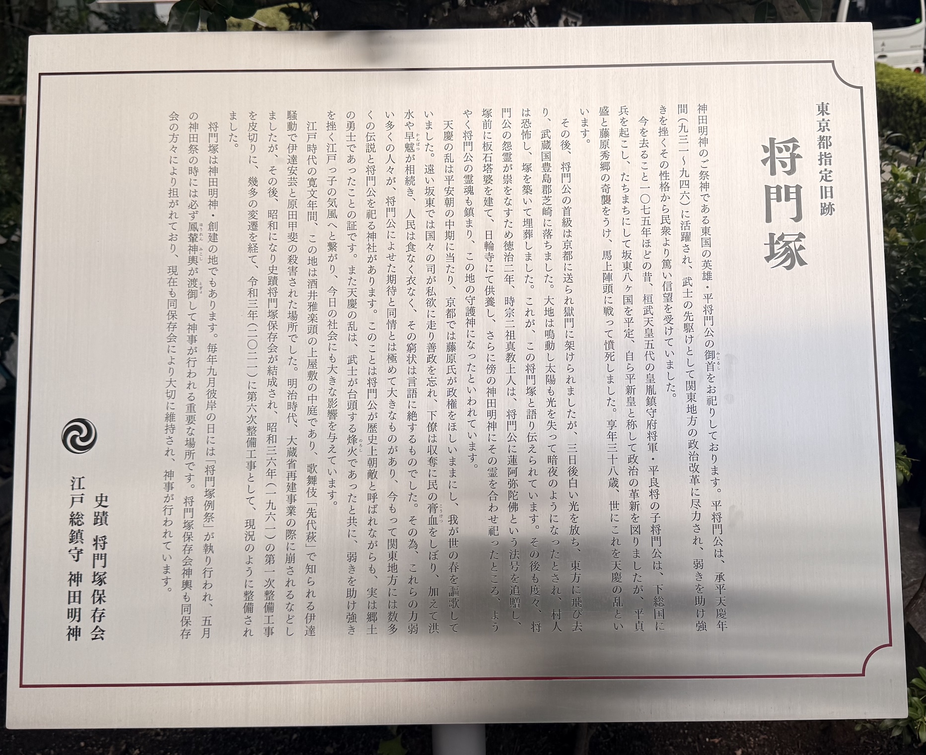 The shrine, called Masakado no Kubizuka or The Hill of Masakado's Head, has been in this place for more than 1000 years and enshrines the decapitated head of Taira no Masakado, the patron saint of Tokyo and one of the major figures in the history of Japan.